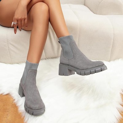 Women's British Style Boots Elastic Chunky Heel Lug Sole Booties