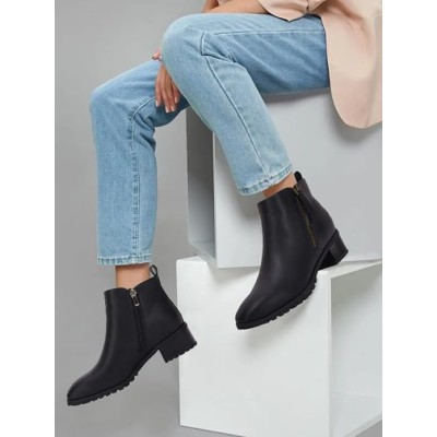 Ankle Boots Chunky Stacked Low Heel Slip on Side Zipper Fall Western Booties