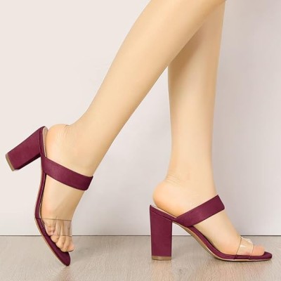 Women's Dual Clear Strap Block Heels Slides Sandals