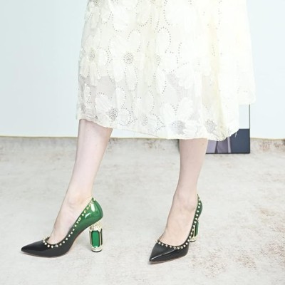 Women Studded Pointed Toe Transparent Pumps High Heels Shoes