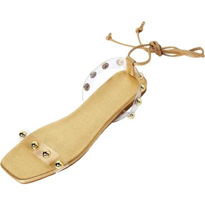 Women's Studded Decor Lace Up Flat Sandals Clear Strap Leather Sandals