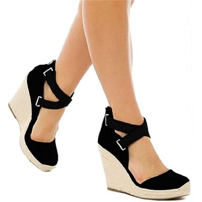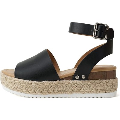 Open Toe Buckle Strap Espadrilles Flatform Wedge Casual Sandal