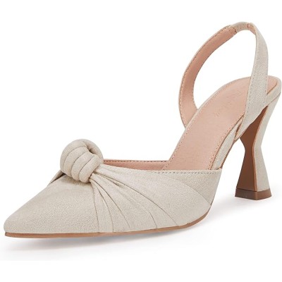 Womens Slingback Pumps Pointed Toe Kitten Heels Suede Upper Dress Party Shoes