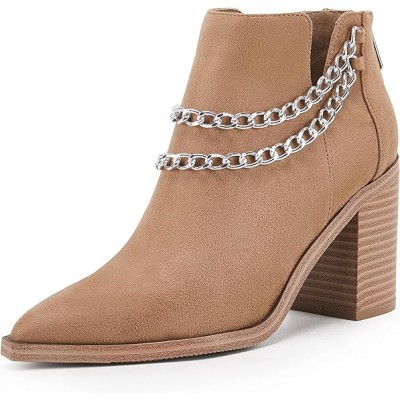 Womens Ankle Boots Chunky Stacked Heel Slip on Shoes Faux Suede Side Zipper Casual Western Booties