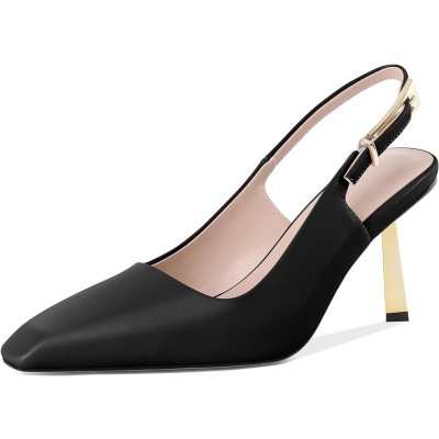 Women Metallic Buckle Square Toe Slip On Stilettos High Heel Pumps Shoes Dressy 3 Inches