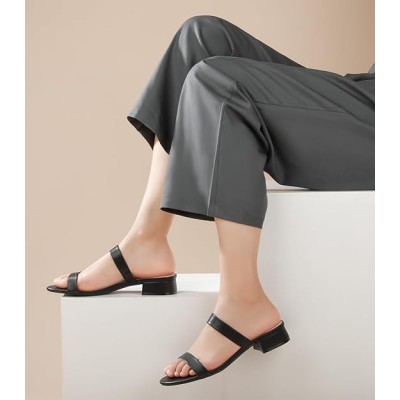 Women Low Chunky Block Heels Comfortable Two Strap Open Toe Flat Sandals Shoe