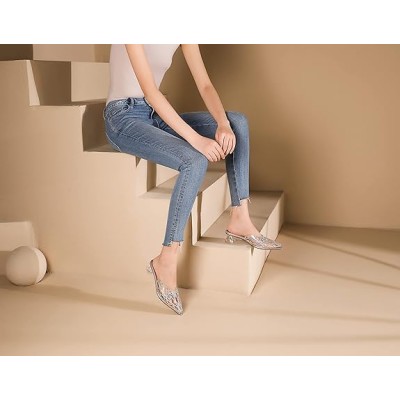 Women's Clear Mule Sandals Pointed Toe Slingback Heels Rhinestone Heels Pumps