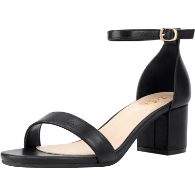 2 Inch Open Toe Block Heels Ankle Strap Adjustable Buckle Lucite Block High Heel Shoes