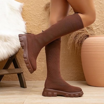 Knee High Boots Stretch Knitted Chunky Block Heel Non-Slip Boots Sock Boots