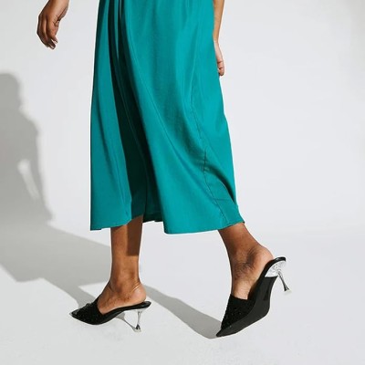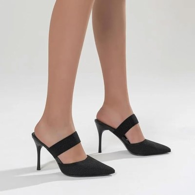 Women Minimalist Mule Pumps Knit Pointed Toe Stiletto Heels