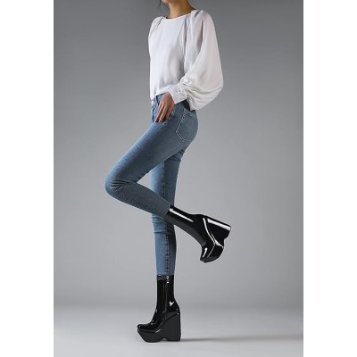 Women Wedges Narrow Mid-Calf Boot Side Zip Chunky High Heeled Booties Shoes