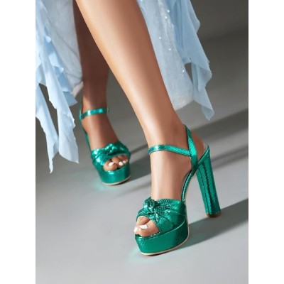Women Chunky Buckle Ankle Strap Heeled Sandals Sexy Snakeskin Comfortable Party Bridal Shoes