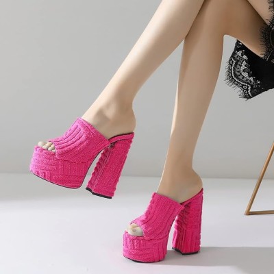 Women Suede Open Toe Slip on Heeled Sandals Sexy Backless Mule Heeled Slides